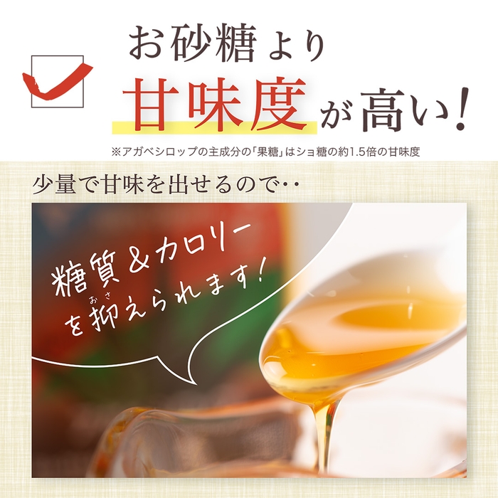 べっこう飴のようなやさしい甘さのアガベシロップは、どんな料理にも合わせやすいクセのない味わい。