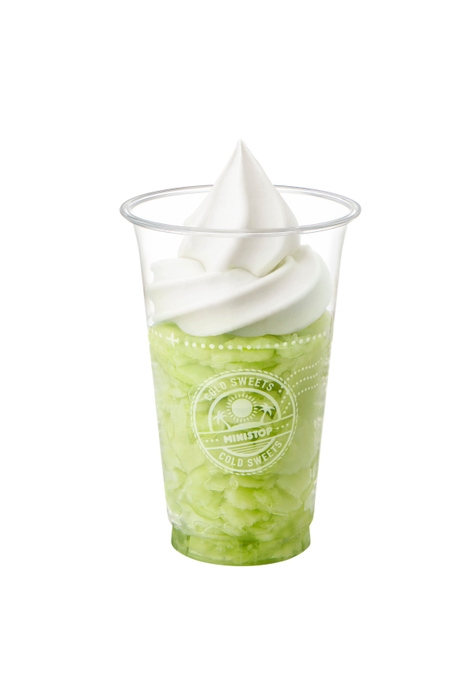 マイナス30℃で急速冷凍したフローズンメロンに、甘みがありながらも後味すっきりのメロンシロップをかけました。さわやかなメロンはソフトクリームバニラとの相性抜群です。