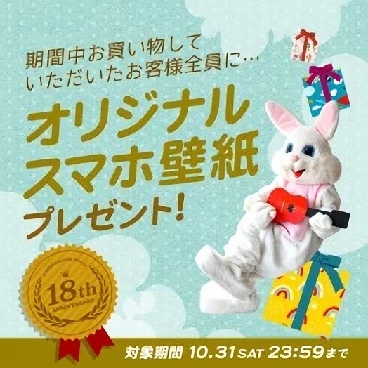 期間中に、イーザッカマニアストアーズ本店でお買い物を頂いた方を対象にオリジナルスマホ壁紙をプレゼントいたします。