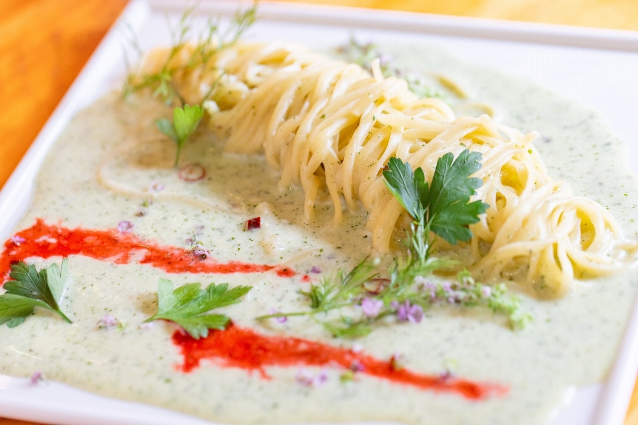 豊田スタジアム4階に位置するレストラン。ガラス張りの空間から豊田市のランドマーク、豊田大橋を望む絶好のロケーションが魅力です。池に浮かぶ睡蓮をイメージしたコース料理も期間限定で楽しめます。