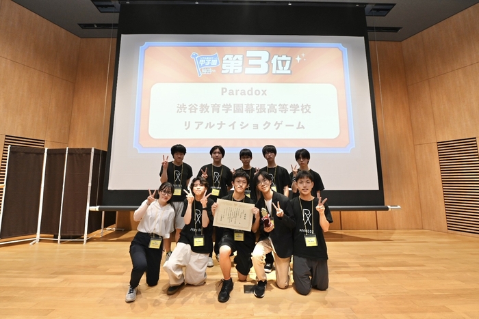 第3位は渋谷教育学園幕張高等学校の「Paradox」。「Paradox」が制作した『リアルナイショクゲーム』は学校が舞台となったストーリー。「高校生である今でしか作れないゲーム、学校生活の中でしか生まれないゲームだった。」と、高校生ならではの着眼点から生まれる設定が、高い評価を獲得しました。