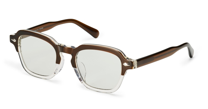 クリア生地とのツートン仕様で、ブローが際立ち凛々しい印象を与えてくれます。シンプルなファッションや古着などあらゆるファッションとマッチします。CAF-3212Mシリーズには、紫外線量によってレンズの色濃度が変化する調光レンズを一部採用しており、屋外ではサングラスとして、夜や屋内ではライトカラーのおしゃれなメガネとして眩しさ対策だけではなくファッションアイテムとして最適です。