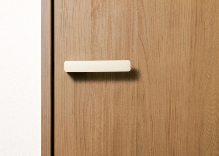 マグネット式のラッチでやさしい操作感に。ハンドルを少し動かすだけで開くショートストローク。見た目も美しく、スッと閉まります。