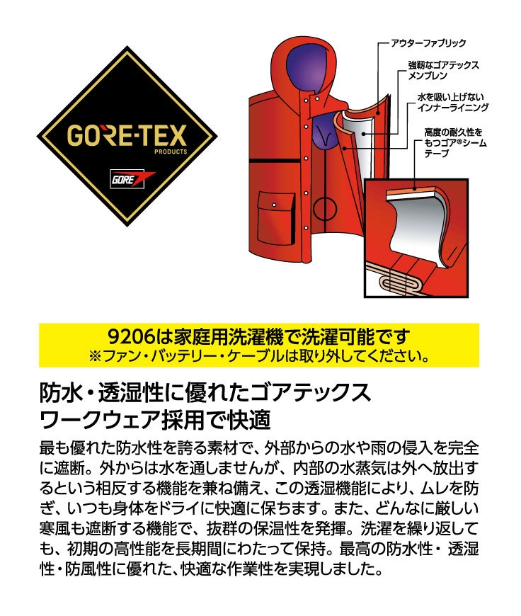 「9206:空調服(R)ゴアテックス レインジャケット」の特長