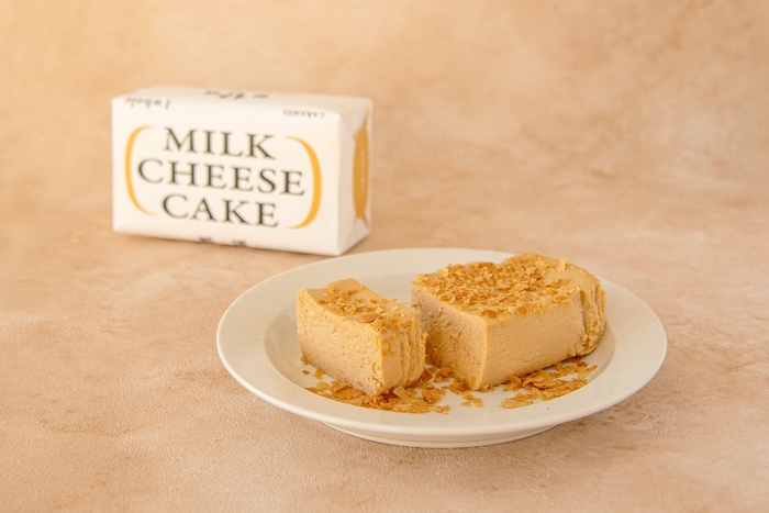 この度、2023年6月の発売開始以降、当牧場の売店(ファームショップ)の人気商品で、この夏の売店売上ランキング1位の「牧場手づくりミルクチーズケーキ」に、新たなフレーバー「キャラメル岩塩」が8月9日(金)に登場します。香ばしく、ほろ苦いキャラメルソースがミルクの甘みと溶けあう味わいが特徴で、別添えのフォユティーヌ(フレーク)でサクサクとした食感の変化も楽しめます。