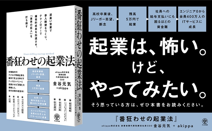 株式会社かんき出版(本社:千代田区 代表取締役社長:齊藤龍男)は、『番狂わせの起業法』(金谷元気、akippa/著)を2024年7月31日より全国の書店・オンライン書店等(一部除く)で発売いたします。