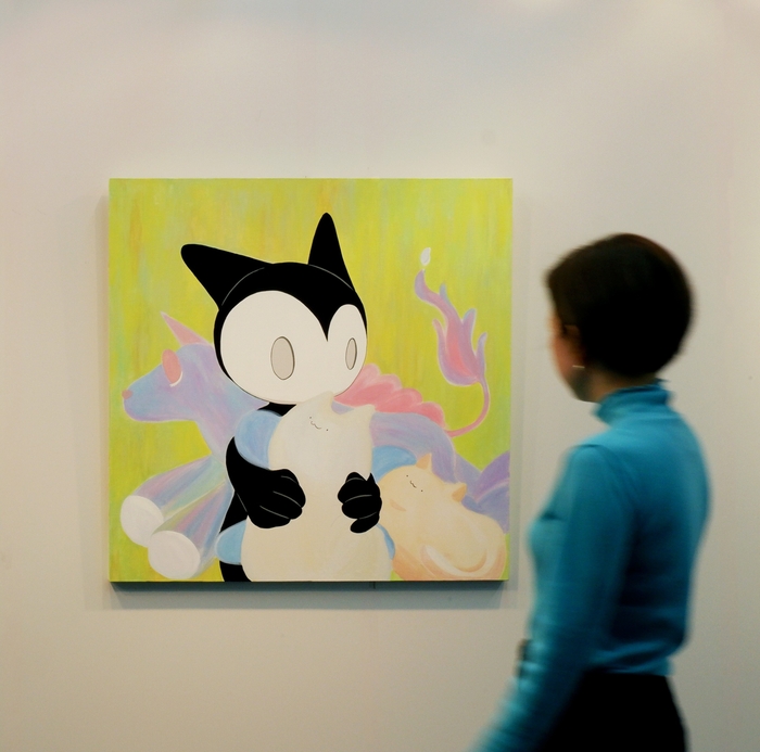 1993年生まれ、2017年から東京を拠点にアーティストとして活動を始めたLottaの作品は「ソックス」というオリジナルキャラクターを軸に展開されます。2022年には海外でも展示を行い、各国にファンを増やしています。
