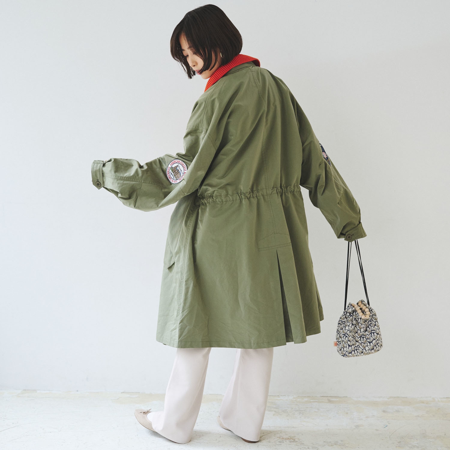 軽くて柔らかなポリピーチ素材を仕様しており、ボリュームシルエットも軽やかな着心地です。