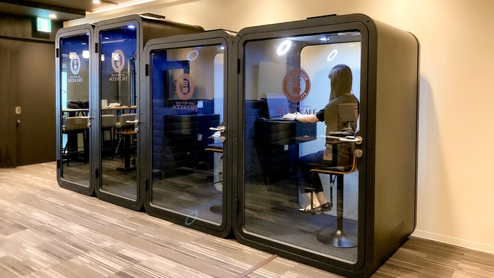 本店舗は誰でも気軽に利用できるコワーキングスペースとして、テレワークステーションACCEA CAFÉ(アクセアカフェ) を併設して営業いたします。