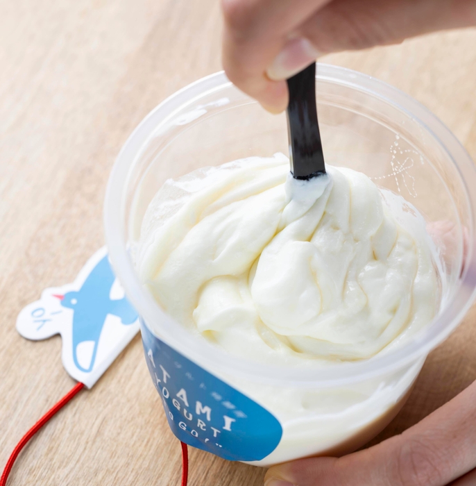 その日の朝にできあがったフレッシュなヨーグルトも販売!超もっちりとした食感からぐるぐる混ぜて食べると感動のクリーミーさに!熱海ヨーグルトは「混ぜて」食べることでもっとまろやかなおいしさになります。