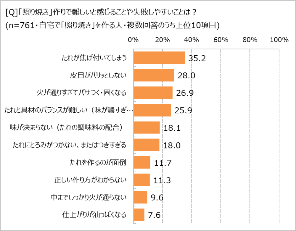 約3人に1人が「照り焼き」作りに苦手意識。たれに関する悩みが多数