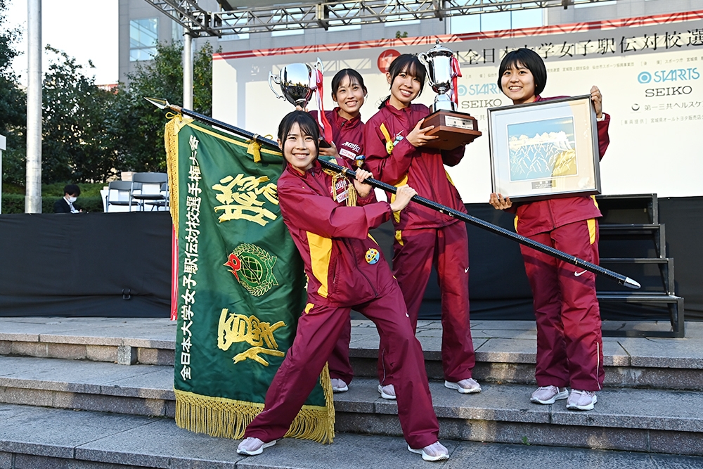 12月30日には全日本大学女子選抜駅伝(富士山女子駅伝)の開催が控えており、5年連続5度目の優勝、そして今大会と合わせて5年連続での「駅伝2冠」を目指してもう一度チームは新たなチャレンジへ向かうことになる。「今回走った選手が富士山女子駅伝でも走れる保証はない」(米田監督)という選手層の厚さも、今年の名城大学女子駅伝部の特徴。今大会で選手として登録されながらも出走は叶わなかった1年生の原田紗希選手、柳樂あずみ選手、大河原萌花選手、明貝菜乃羽選手や、最上級生の荒井優奈選手らが、年末の富士山麓で活躍する姿が見られる可能性も十分あるだろう。各選手がそれぞれの思いをもって残りの約2ヵ月を過ごす。「2冠が今年の目標。今回のように、全員が走れる状態で臨みたいです」と小林主将。さらなる偉業達成に向けて、チームは歩みを止めない。