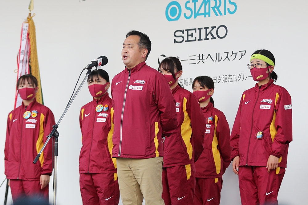 選手たちの将来も考え、本人の主体性に任せる方針へ転換し、実を結んでいったことを語った。「崩れない駅伝をするという意味では、自分たちで考える習慣が普段からできています。レースの中でいろんな場面がありますが、自分の考えで、どんなペースにするか、どこでスパートするかといった状況判断ができています。こういったことを習慣づけるのが必要ですので、普段から自分たちで考えるチームづくりをやってきました」と強さの秘訣を明かした。また、意識の面だけでなく、女性アスリートとしての身体づくりの重要性についても言及し、管理栄養士を目指す学生の研修の一環として食事を提供してくれる名古屋学芸大学など各方面からの協力に謝意を表した。