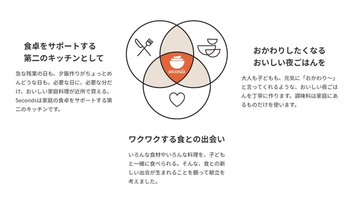 みなさまの家庭の食卓をサポートする「第二のキッチン」として、Secondsが始まりました。