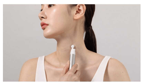 首、口元、ほうれい線など、シワが気になる部位にローリングして肌を引き上げるようにマッサージしてください。
