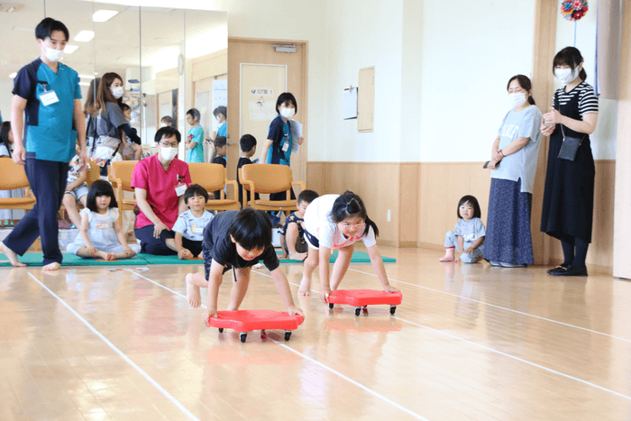 単なる“あそび”を行うだけのイベントではなく、理学療法士、作業療法士、言語聴覚士といったリハビリテーション専門職が、あそびを通じて子どもの基礎運動能力向上を直接サポートします。