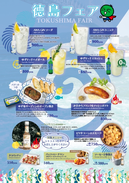本取り組みの第二弾として、徳島県(知事:後藤田正純)と連携し、徳島県の魅力あるお酒や産品を味わっていただける「徳島フェア(TOKUSHIMA FAIR)」を首都圏の対象店舗で実施します。