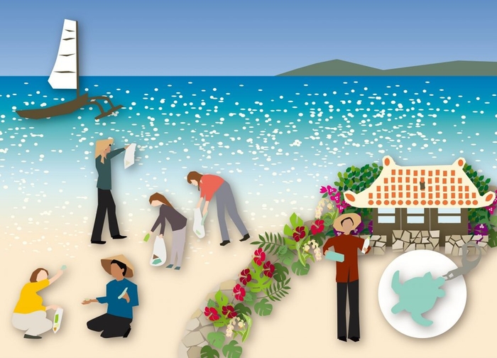 沖縄県・竹富島にある滞在型リゾート「星のや竹富島」は、2021年3月21日から5月31日まで、島の自然文化を学びながらビーチクリーンをおこなう環境保全ツアー「まいふなー*¹ツアー」を実施します。星のや竹富島のスタッフがガイドとなり、島の西側の浜辺でビーチクリーンをします。清掃後は特殊な機械を用いてオリジナルのキーホルダーをつくり、資源リサイクルも体験できるツアーです。ビーチクリーンを先導するガイドである星のや竹富島のスタッフから、竹富島の海洋漂着物の現状について学んだり、竹富島にまつわる神話や歴史文化の話を聞いたりすることができます。ツアーを通して浜辺を綺麗にするだけでなく、身近な生活の中でのごみに対する意識を見直すきっかけや、ディープな島の文化や歴史を知ることができる体験です。