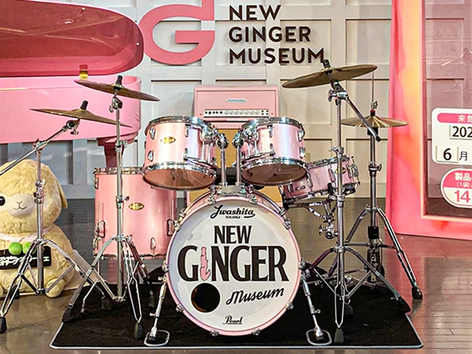 さらに今回、岩下の新生姜色のドラムセット(Pearl)が展示初登場。こちらもドラム経験者に開放いたします。
