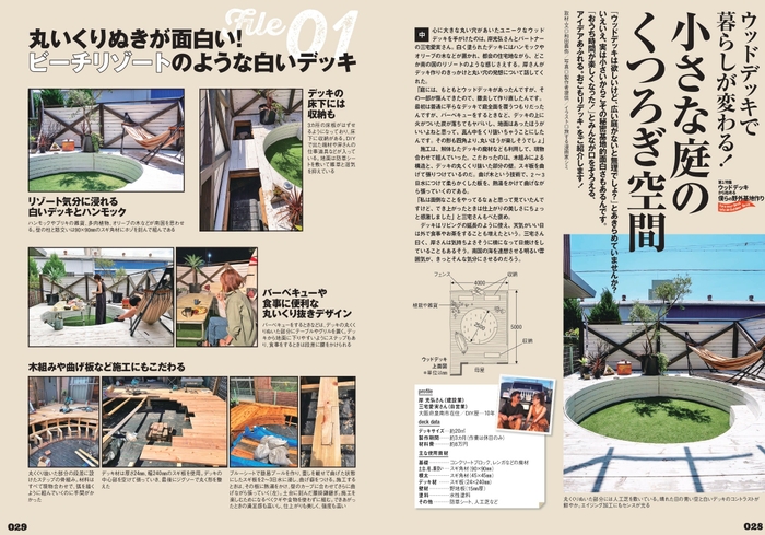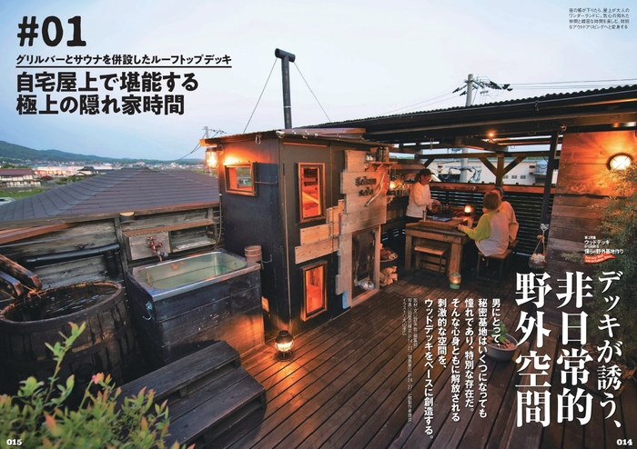「ウッドデッキ作りがアウトドアリビングを実現する第一歩」をテーマに、小さな庭に作るささやかな(でも最高な)くつろぎ空間から、子どもの頃の夢想をそのまま実現したような、憧れの野外基地とその作り方を紹介。冒険心をくすぐる大人の秘密基地が大集合!