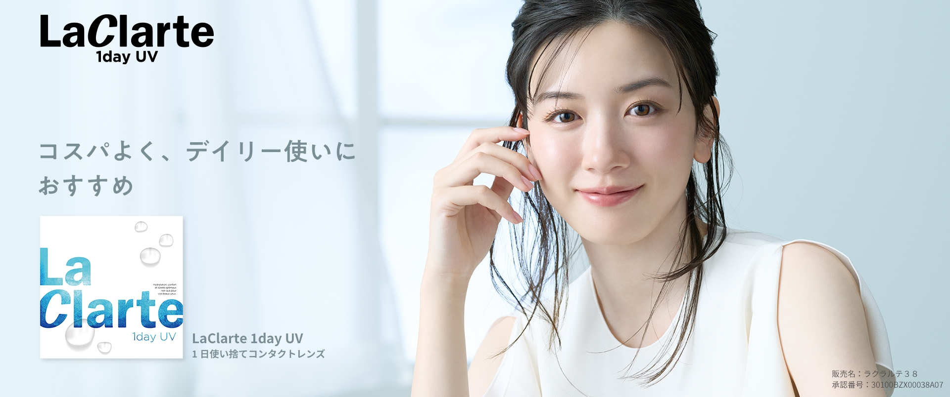 「LaClarte(ラクラルテ)」は、“ちょうどいいって、ここちいい。”をコンセプトとし、「つけごこち」「うるおい」「やさしさ」にこだわったコンタクトレンズです。