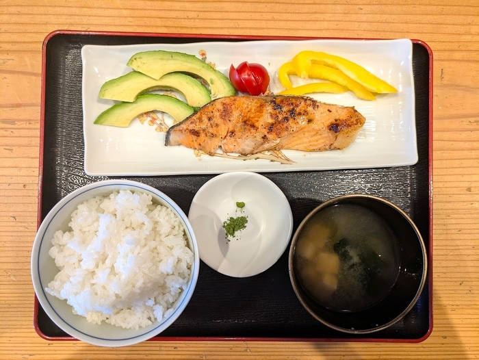 メイン食材に選んだのは、美容や筋トレに最適な高品質のタンパク源である鮭。栄養バランスを重視した定食(1000円)では、鮭に地元の新鮮な野菜や味噌汁を組み合わせています。女性には適量を意識したポーション、筋トレをする男性には追加オプションも用意し、それぞれのニーズに対応しています。