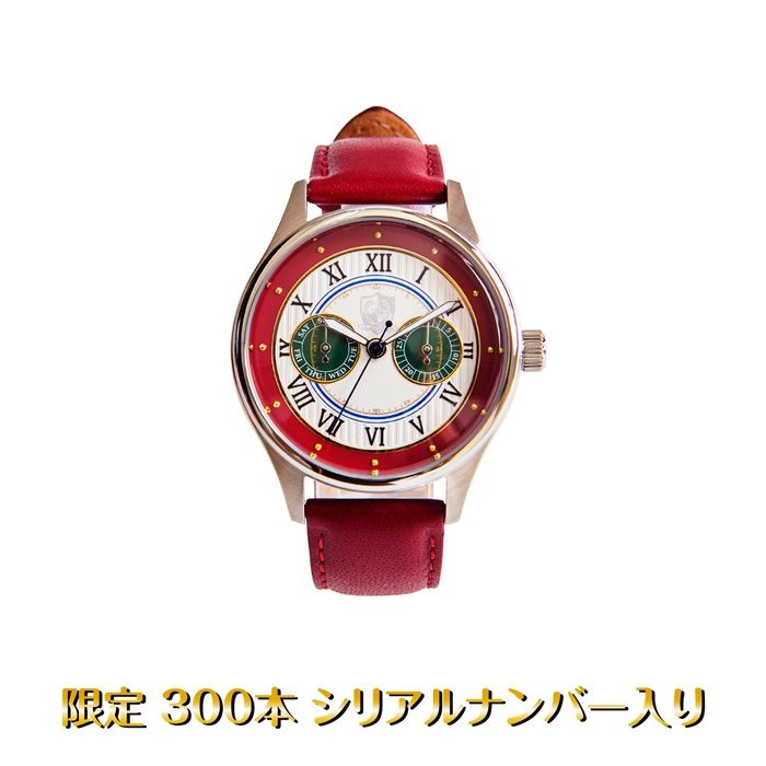 校章やブレザーのボタン、スカートの裾のラインを表現した盤面や、リボン・ネクタイをイメージした青色の秒針など、作品の世界観がふんだんに取り込まれた特別なデザインです。