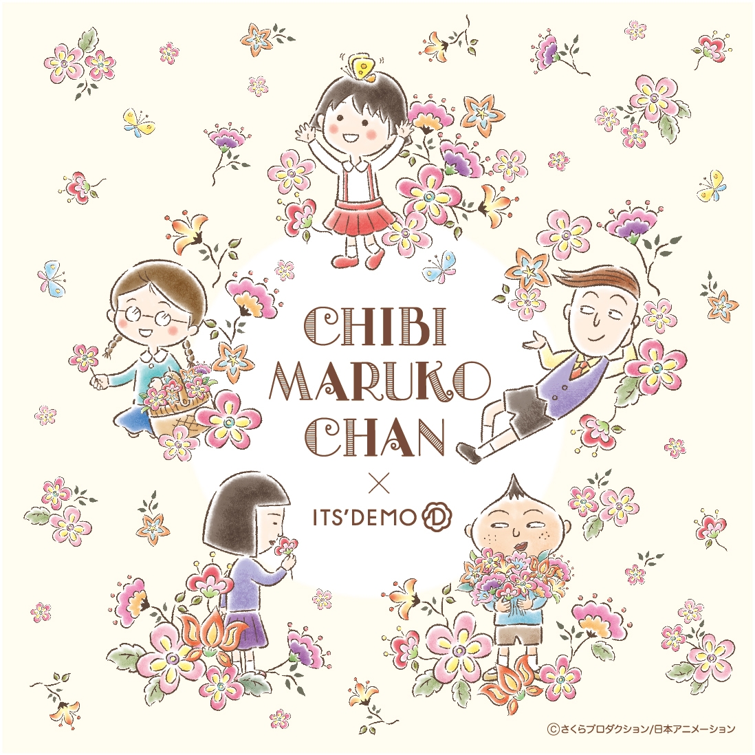 ちびまる子ちゃん×ITS’DEMO 初のコラボレーション実施が決定 3年4組のみんながオリエンタルな雰囲気漂うお花柄になりました! 8月10日(火)からコラボグッズ販売開始