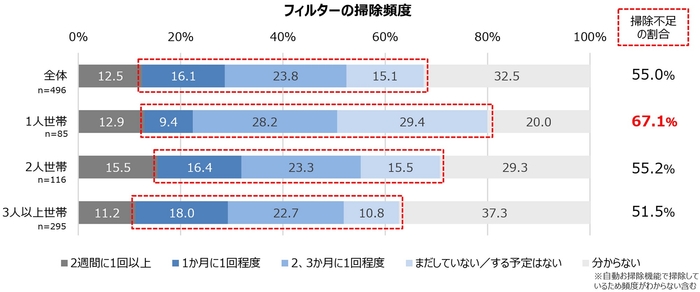 単身世帯の67.1%でエアコンのフィルター掃除が不足している