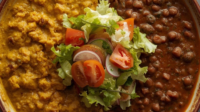 秋口にピッタリの薬膳カレーを「えいっ!」とうれしい2種盛りにしました。