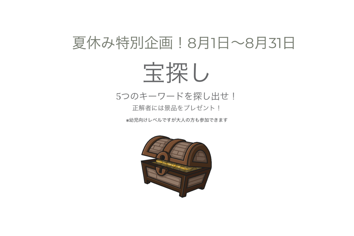 BREEZE Family Campでは夏休み特別企画として、無料でお楽しみ頂ける「宝探しゲーム」を開催致します。