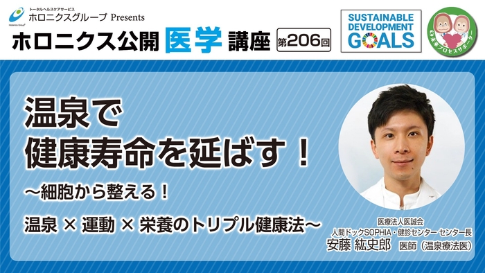動画公開『温泉で健康寿命を延ばす!〜細胞から整える!温泉×運動×栄養のトリプル健康法〜』/第206回ホロニクス公開医学講座