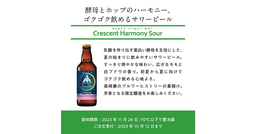数量限定ビール『Crescent Harmony Sour』(クレセントハーモニーサワー)を2023年6月12日に発売いたしました。