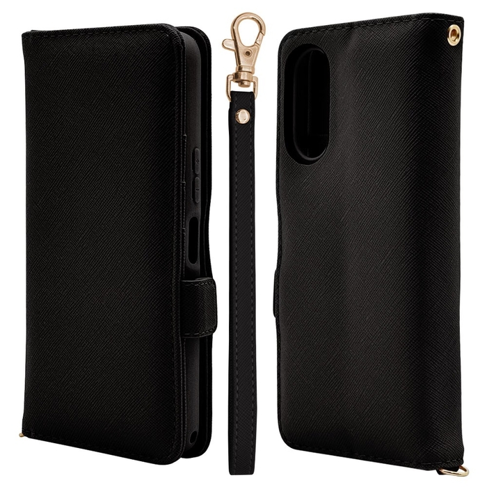 液晶画面側と背面側の両面を保護できる持ちやすい手帳型ケースです。