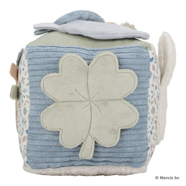 ラッキーリーブスデザインのキューブトイ。ふわふわなので、お子さんが遊んでも安心です。