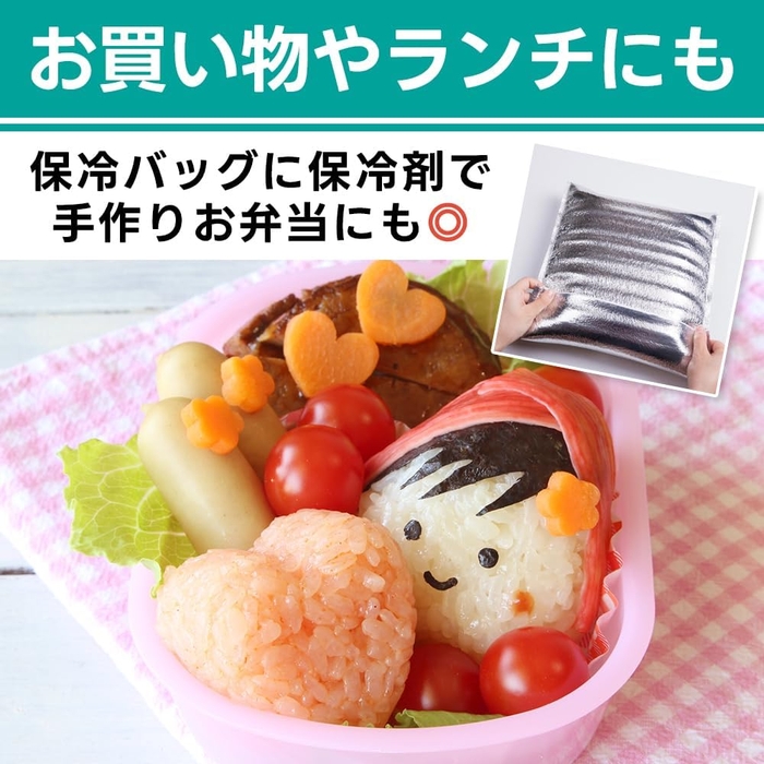 予め袋状になっているため、中に食材を詰めて封をするだけ!プレゼントのラッピングのような手間がかからずどなたでも使いやすい仕様です。アルミバッグは保冷保温以外に、防水性にも優れています。溶けた氷や汁物などによる液漏れを防ぐ設計により、カバンの中が汚れる心配がありません。