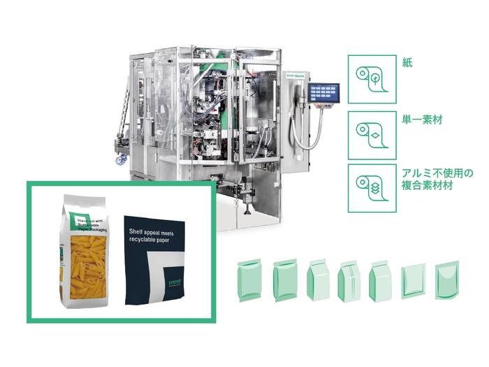 日本法人(シンテゴンテクノロジー株式会社・東京都渋谷区)においても、単一プラスチック、紙包材に対応した包装機の提供は可能で、2021年中には、国内での縦型包装機による包装サンプルの製作を始める。
