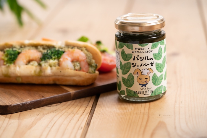 新鮮なバジルの葉をすりつぶしてオリーブ油、チーズ、松の実などを加えてペースト状のジェノベーゼにしました。パスタソースの他にもピザのトッピングや、パンにのせてもおいしくいただけます。バジルのジェノベーゼとエビやチキン、野菜などをはさんだパンがおすすめです。