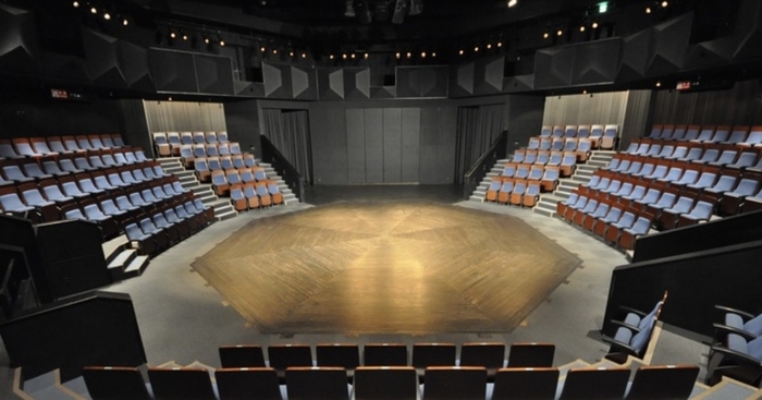 名古屋・千種文化小劇場(ちくさ座)は、観客に360度から囲まれる円形ステージを持つ特異な劇場です。