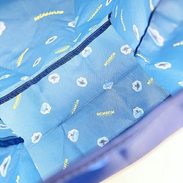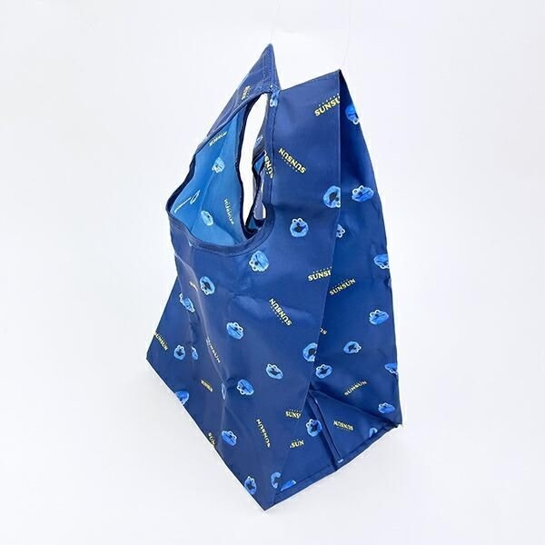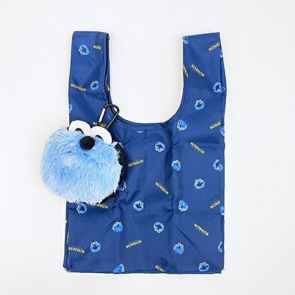 パペットスンスンのふわもこなポーチ付、シックなブルーのエコバッグ