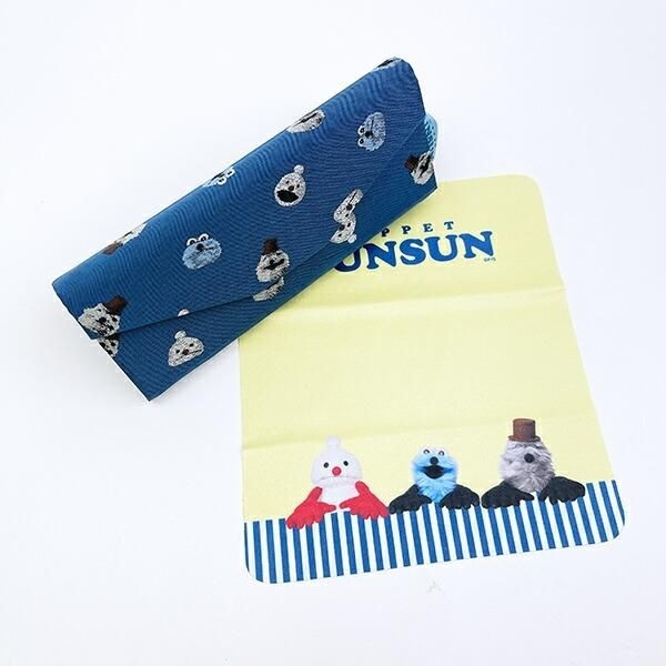 まずご紹介するパペットスンスンのアイテムは、ジャガード折りたたみメガネケース(総柄)です。