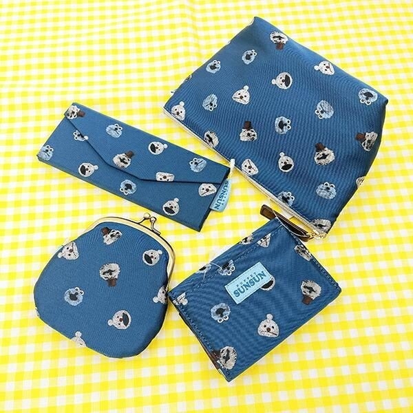 他にもポーチやがま口財布もあります!シックなブルーで高級感ある落ち着いたシリーズをぜひ揃えて、パペットスンスンのアイテムで楽しい生活を送りましょう。