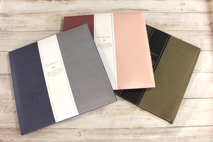 表紙タイプ「ハイカラ(茜、ラムネ、鳥の子)」、「晴日和(梅色、蒼色、松色)」、「ハピネス(赤、黒)」