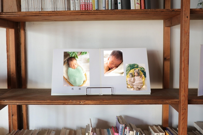 長い年月の保管に備えて、表紙と同じデザインの専用化粧箱をご用意いたしました。湿気や日光など、経年の環境変化からお客様の思い出を大切に守ります。