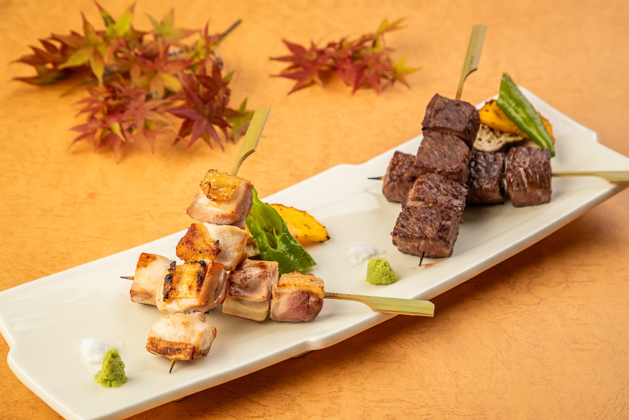 地鶏ならではの味と噛み応えを秋の味覚とともにお楽しみください。甘めの田楽味噌との相性は抜群。