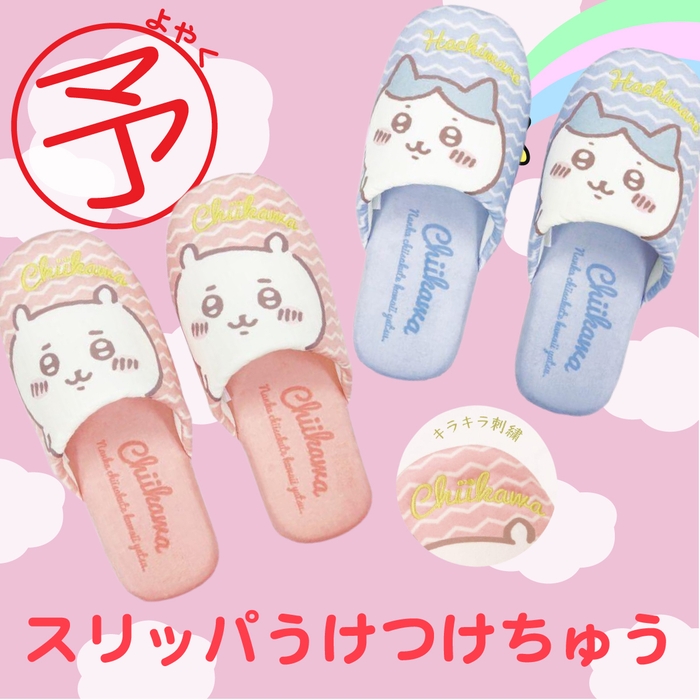 速報!予約開始 大人気のちいかわ&ハチワレのルームシューズ♪つま先のキラキラ刺繍がアクセント