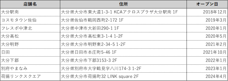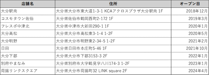 ●大分県のエニタイムフィットネス店舗 ※オープン日順