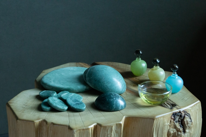 滞在中の2回のスパトリートメントでは、寛ぎながら身体を温め、心身のバランスを調えます。初日の夜には、温めた翡翠を使った全身のトリートメントを受けます。なめらかな肌触りの翡翠が優しく身体を温ため、お休み前に心身の緊張を和らげます。翌日の昼下がりには、季節の植物を練り込み、蒸し上げた葉玉(ようぎょく)を用いたトリートメントで再びリラックスへと導きます。