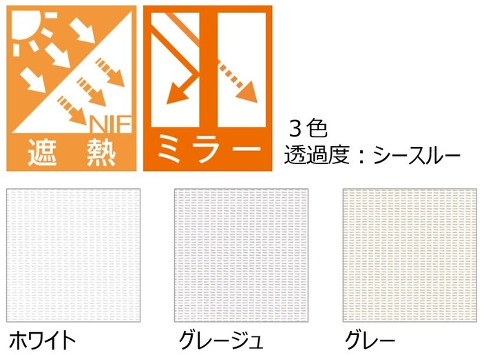 遮熱性能とミラー効果を持ち、外からの視線を遮りつつ、室内にやさしく光を採り入れることができる優れた生地です。