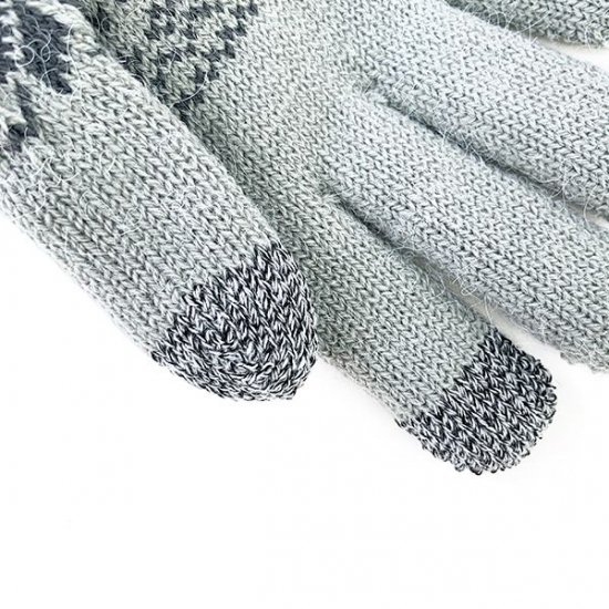 グレーの毛糸が暖かそうな、スマホ対応の手袋です。